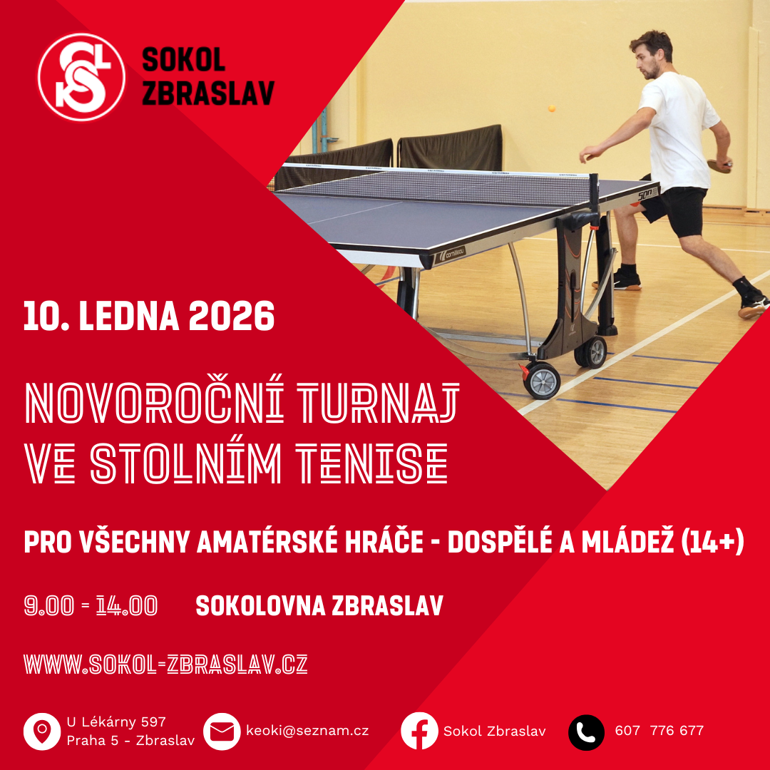 Jako každý rok začínáme v novém roce tradičním turnajem ve stolním tenise. Těšíme se na všechny sportovní nadšence!