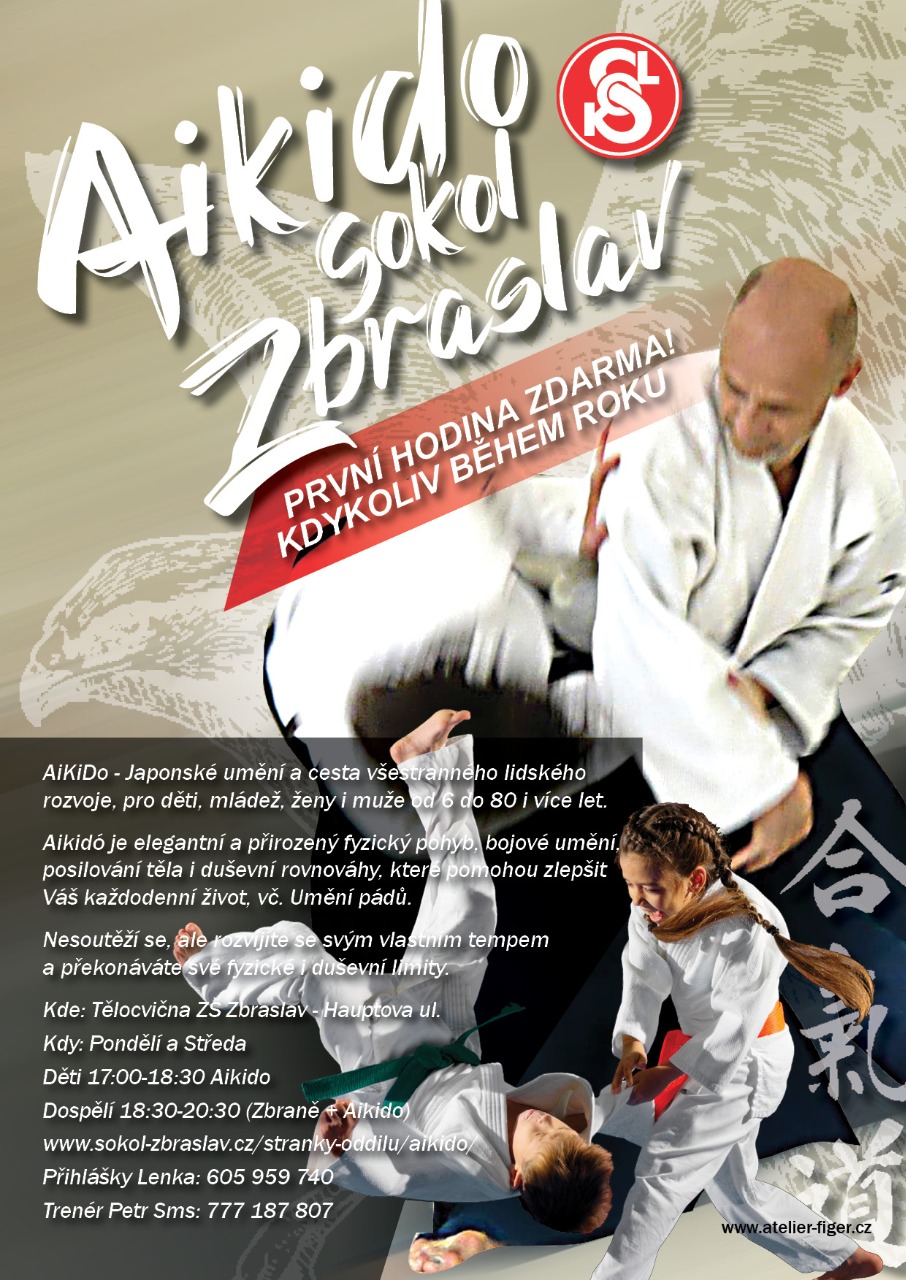 Aikidó vám nabízí elegantní a přirozený fyzický pohyb, sebeobranu, posilování těla i duševní rovnováhy a také mnoho principů, které pomohou zlepšit váš každodenní život, včetně “Umění pádů”. V Aikidó nejsou žádné soutěže, rozvíjíte se v něm svým vlastním tempem a překonáváte hlavně své vlastní fyzické i duševní limity.